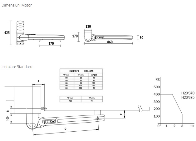 Cursa de utilizare | mm | 310/340 |