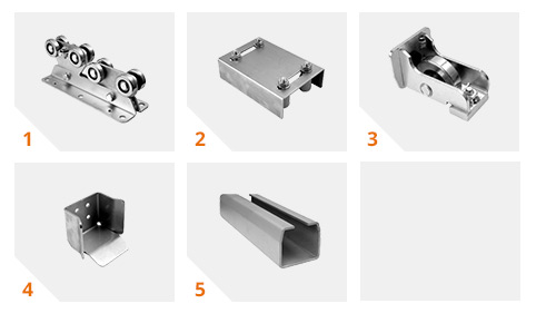Sitem și accesorii pentru porți consolă, având o durabilitate ridicată și o șină zincată ramforsată
